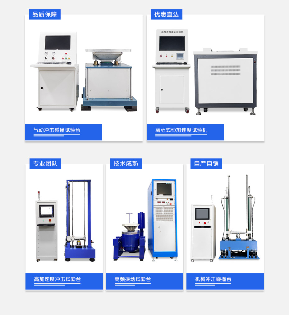 冲击试验台可供试验产品做冲击试验,主要提供给小型试件作较高冲击加速度试验用。考核试品承受冲击破坏的程度。常应用于电子元器件,电子线路板等环境试验,本试验设备符合《电工电子产品基本环境试验规范Ea:冲击试验方法》及《IEC68-2-27,试验Ea:冲击》和《MIF-STD202F》规范对冲击试验的要求。
